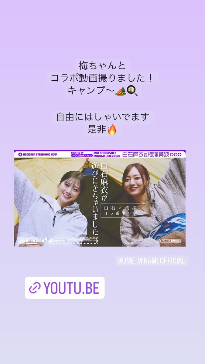 【元乃木坂】白石麻衣「梅ちゃんとコラボ動画撮りました!」 2022/12/4 乃木坂46まとめの「ま」 " " 887: 君の名は(茸) (スププ Sd94-2R7D) 2022/12/03(土) 12:36:25.78 ID:19MIJwa6d 白石麻衣インスタストーリー 梅ちゃんと コラボ動画撮りました! キャンプ~ 自由にはしゃいでます 是非 続きを読む Source: 乃木坂46まとめの「ま」
