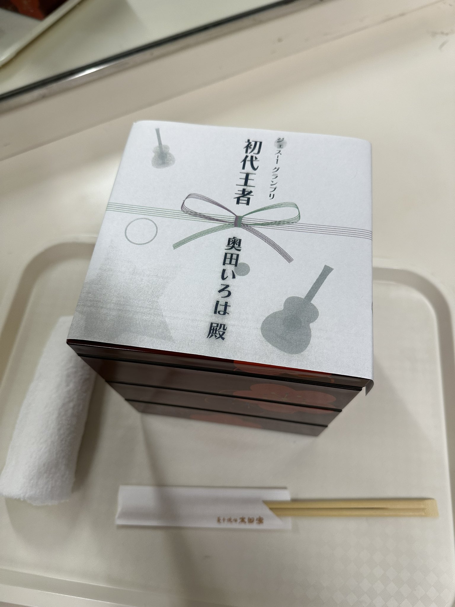 新 #乃木坂スター誕生LIVE 内の企画コーナー、ジェス1グランプリで見事優勝した #奥田いろは ちゃん。優勝賞品の豪華弁当、ちゃんと差し入れておきました。優勝おめでとうございます🎉
