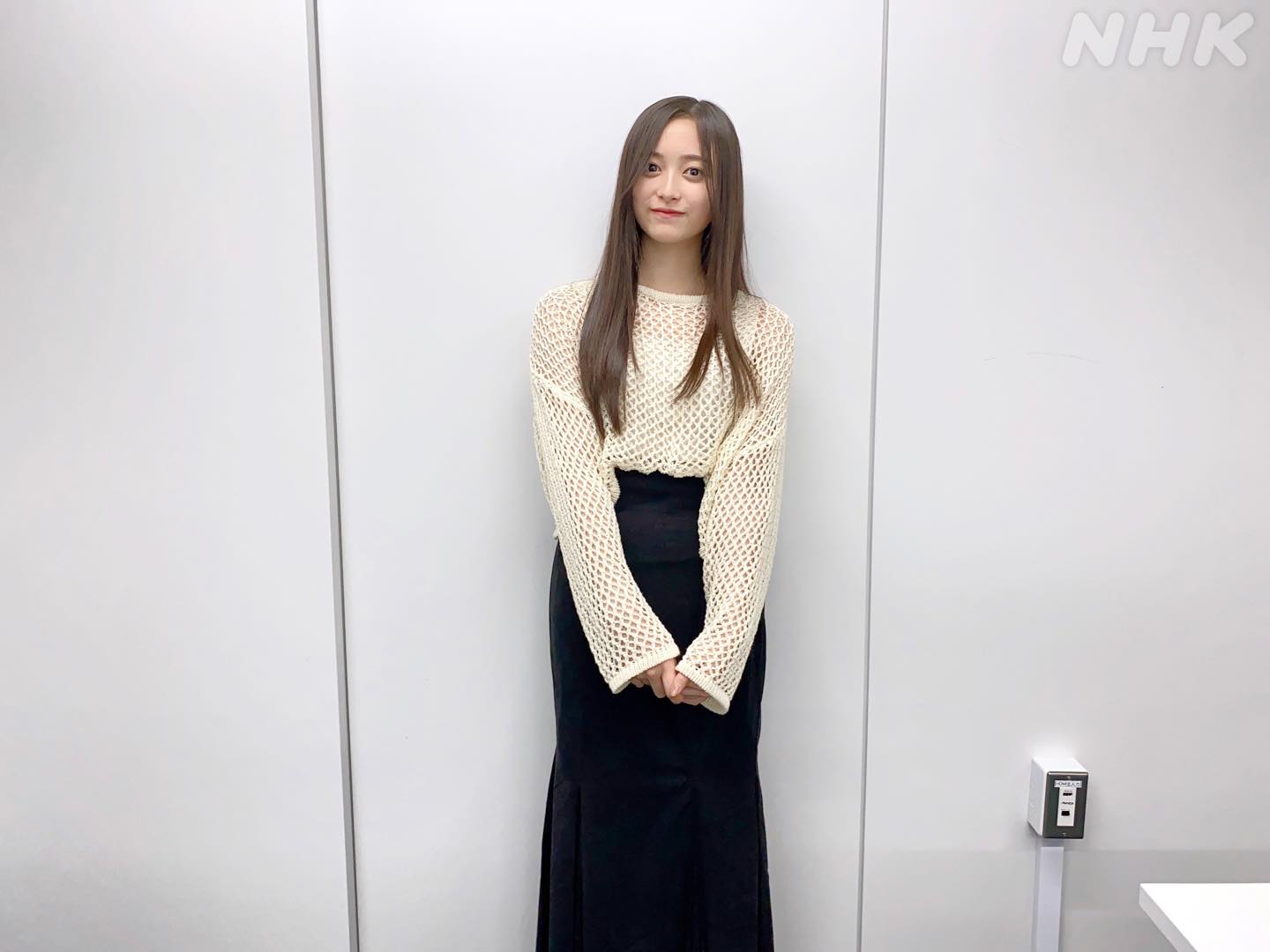 聖来「透け感のあるニットに黒のスカートに厚底のサンダル!」