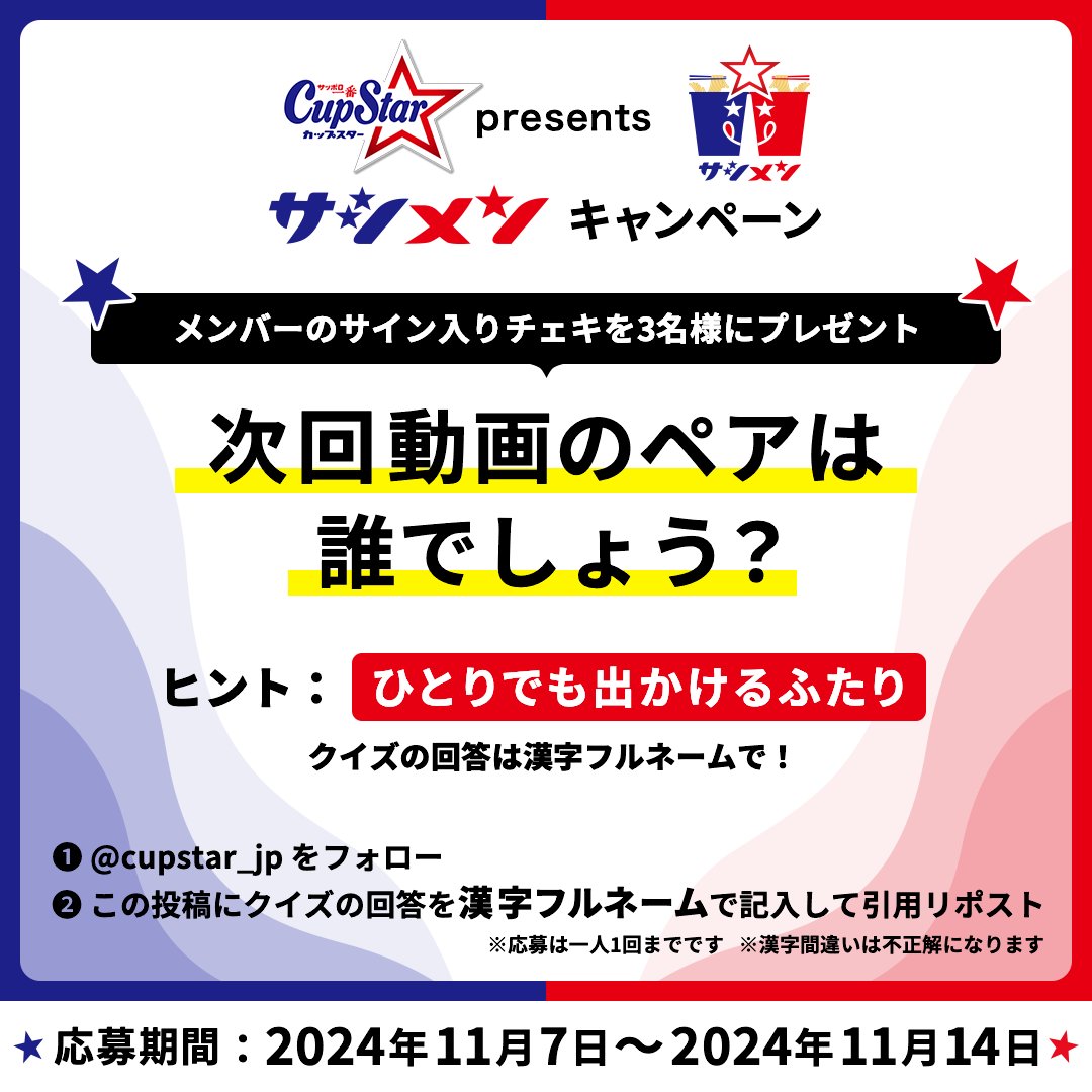 \サイン入りチェキが当たる💕/#カップスター presents #サシメン キャンペーン 第八弾