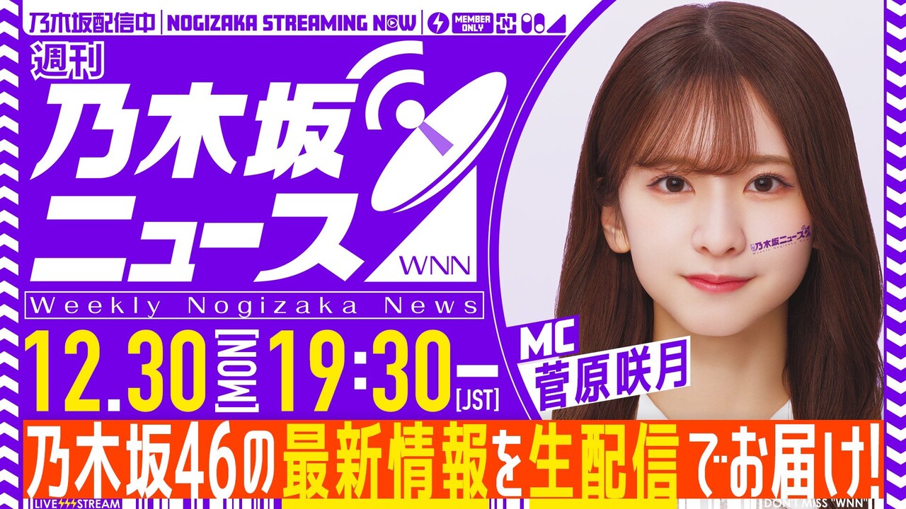 本日12月30日(月)の「週刊乃木坂ニュース」は19:30~より生配信でお送りします📡