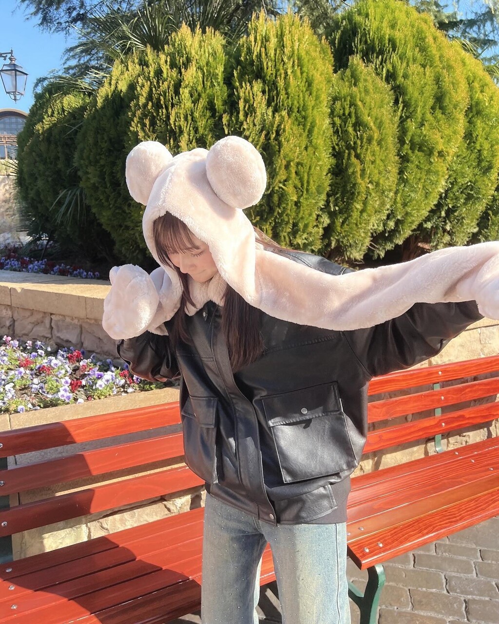 #この時期は暖かいふわふわの帽子