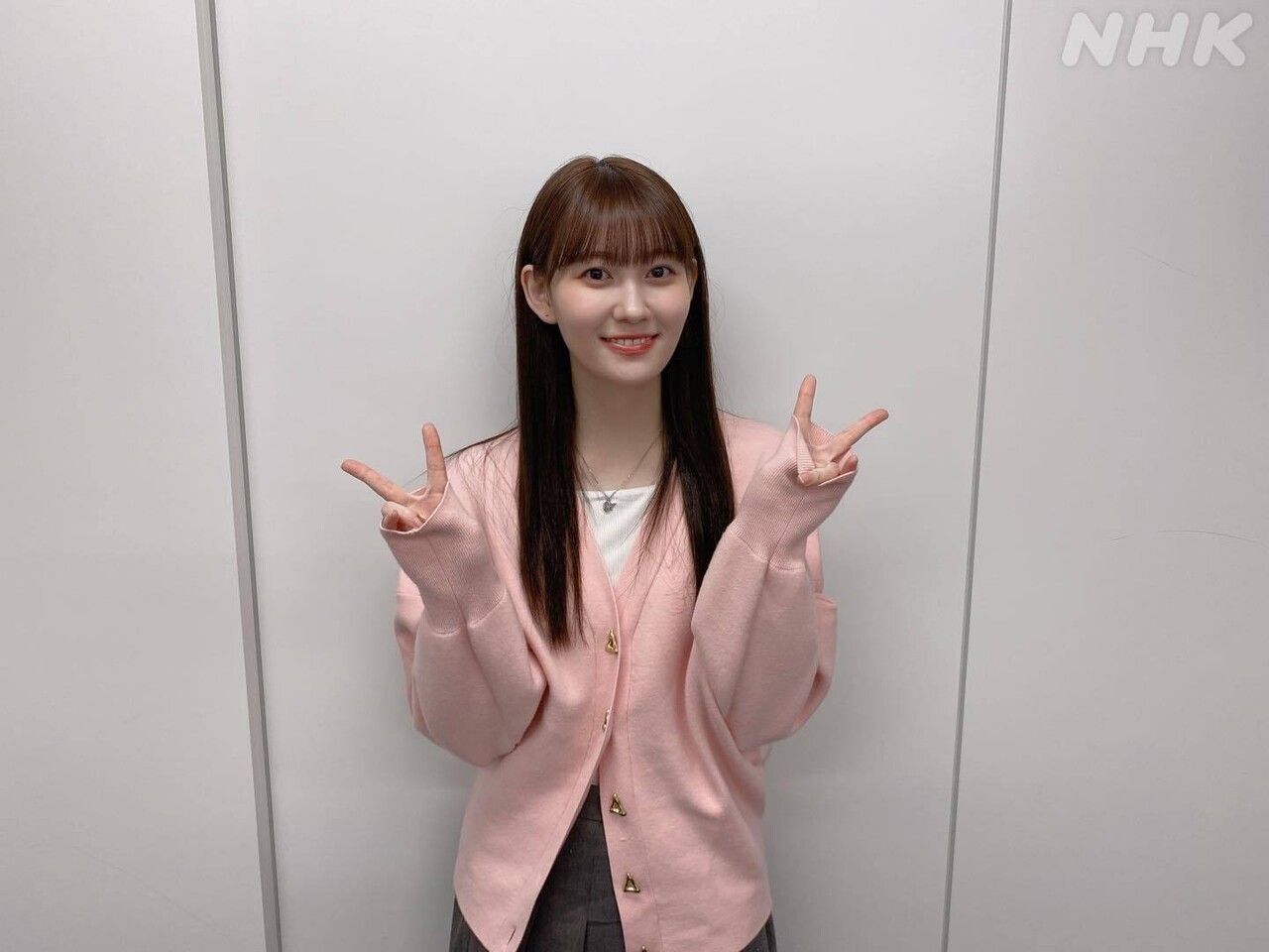 茉央「春な感じで薄いピンクのカーディガン」