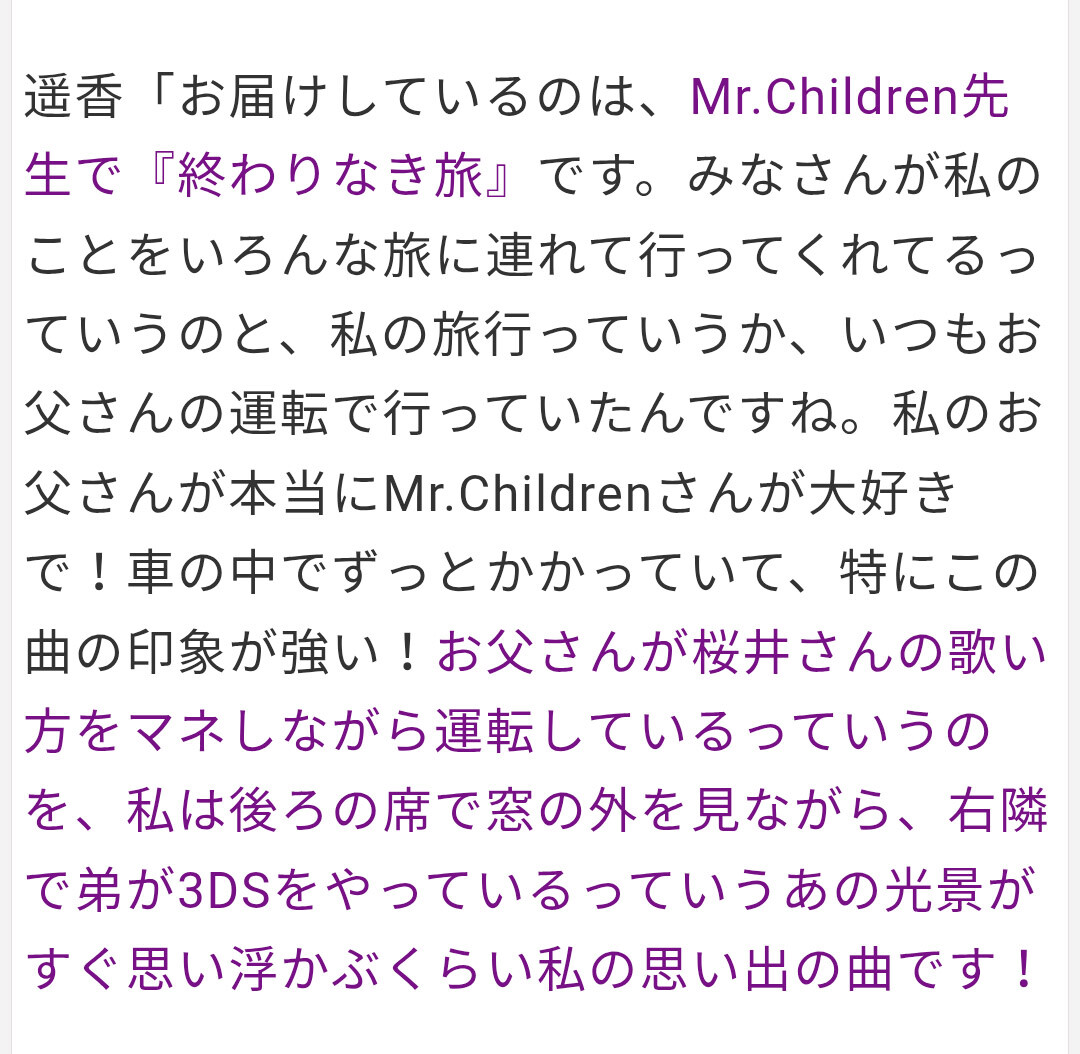 かっきーパパは自分の娘の曲ミスチルが歌ってくれて感激だったろな