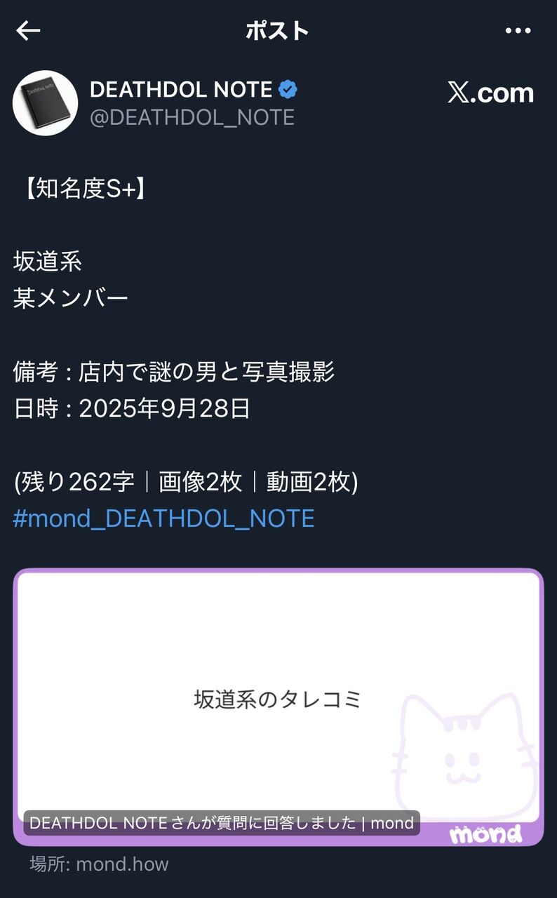 【悲報】坂道メンバーにデスドル砲か。日向坂46が有力 2025/10/3 乃木坂46まとめ 乃木りんく " " 1: 名無し46 2025/10/03(金) 13:13:50.00 ID:dsY8x 続きを読む Source: 乃木坂46まとめ 乃木りんく