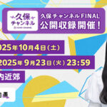 554: 名無し ID:7z1Jf 本日より観覧応募スタート‼️ 久保チャンネル最後の収録を皆様と共...